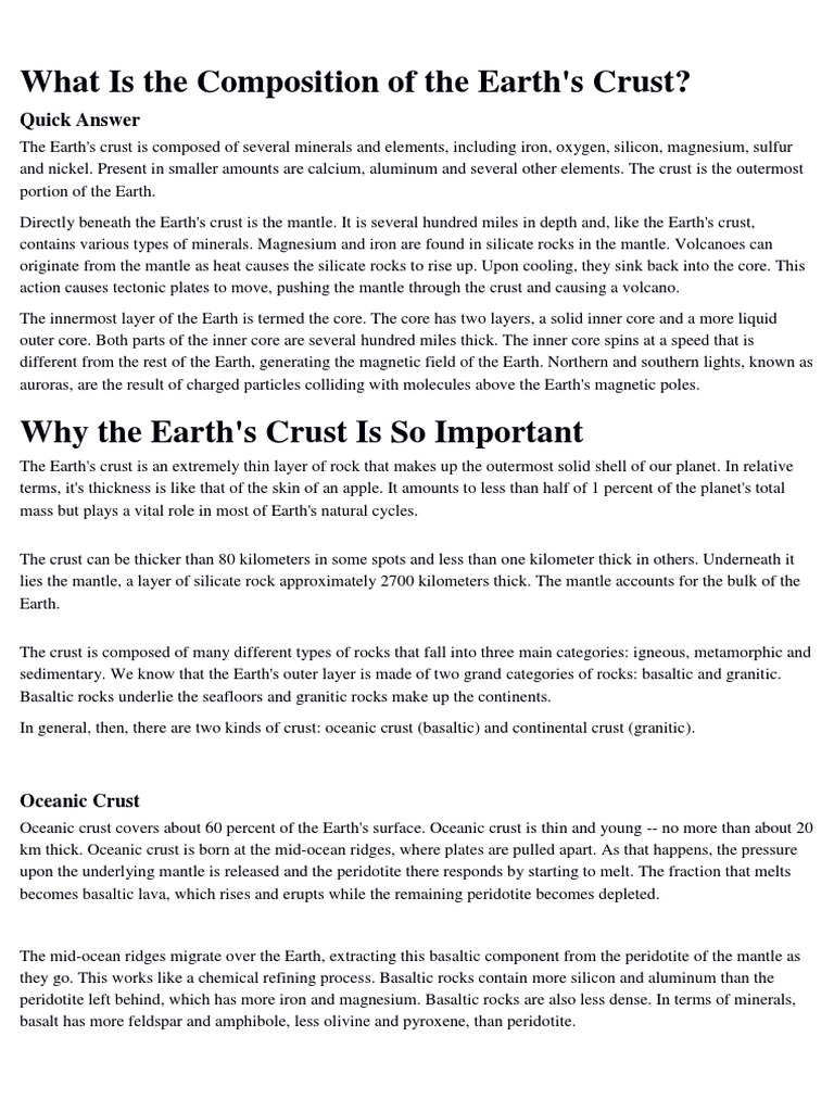 Composition Of The Earth Crust Crust Geology Mantle Geology